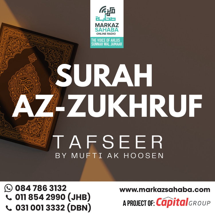 Tafseer Of Sura Az-Zukhruf - Presented by Mufti A.K. Hoosen, a globally respected scholar known for his deep insight, authentic scholarship, and clear presentation, this Tafseer brings together classical explanations with practical guidance for the modern believer