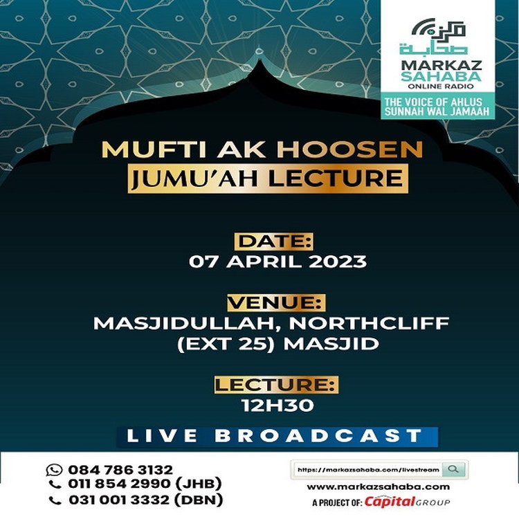 07/04/23 - (Ramadan) Ju'muah Lecture with Mufti AK Hoosen - MASJIDULLAH Northcliff (Ext 25)