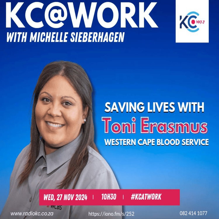 ON KC@WORK, TONI ERASMUS: PUBLIC RELATIONS PRACTITIONER FROM WESTERN CAPE BLOOD SERVICE - SAVING LIVES.