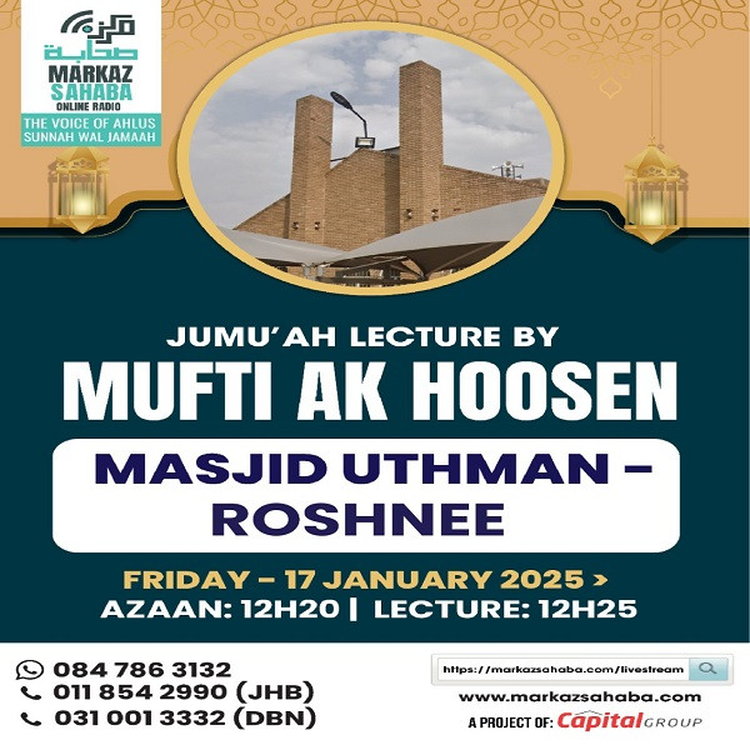 17 Jan 25 - Mufti AK Hoosen - Jumuah Lecture at Masjid Uthman - Roshnee
