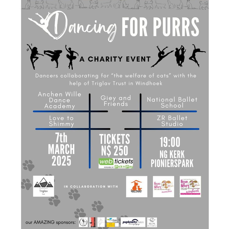 Various dancers are all coming together to raise funds for four institutions that do incredible work for cats and other animals in Namibia. Unfortunately this costs money, and you can help by buying tickets to this amazing event!