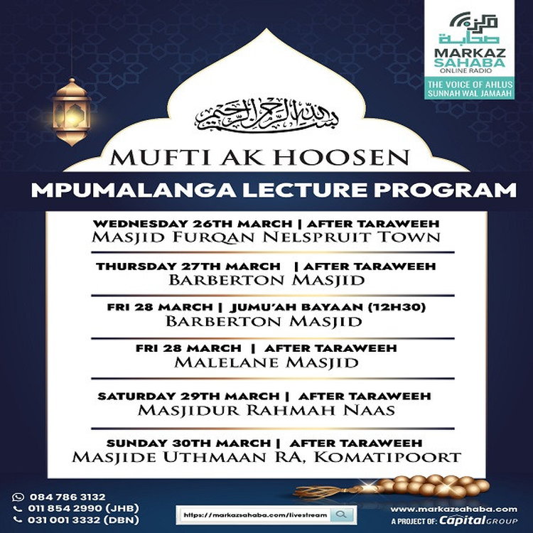 28 March 25 - Ramadan 1446 - Jumu'ah Lecture at Barberton Masjid (Mpumalanga)