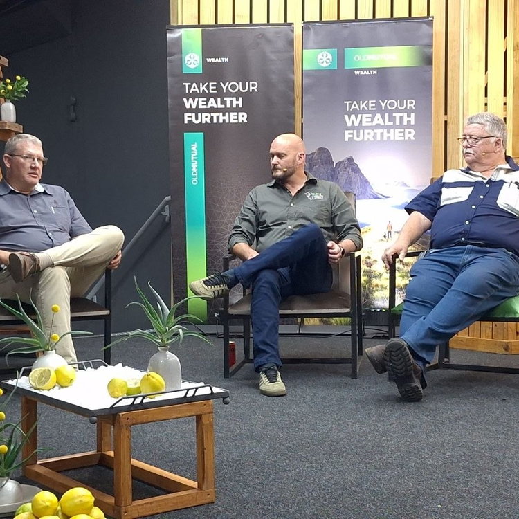 Gedurende 'n paneelbespreking by NAMPO Alfa het dr. Dave Migley van die Herkouerveterinere Vereniging van Suid-Afrika, Jaco Liebenberg van Beefmaster-voerkraal en Dewald Olivier van RMIS met Landbouweekblad-redakteur, Chris Burgess, gesels.