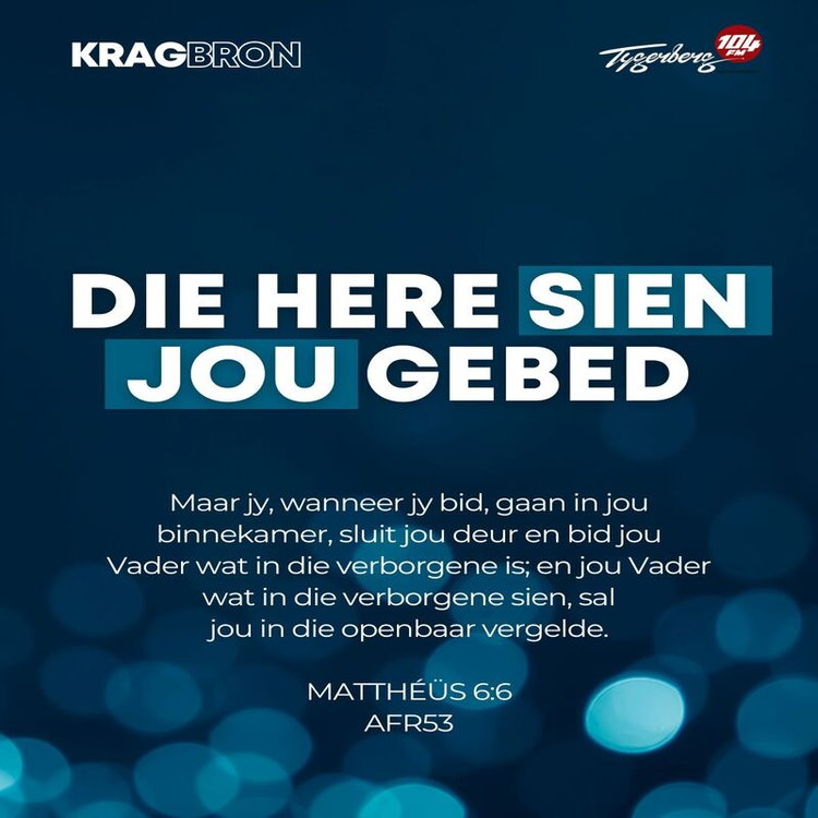 Maar jy, wanneer jy bid, gaan in jou binnekamer, sluit jou deur en bid jou Vader wat in die verborgene is; en jou Vader wat in die verborgene sien, sal jou in die openbaar vergelde. MATTHÉÜS 6:6 AFR53